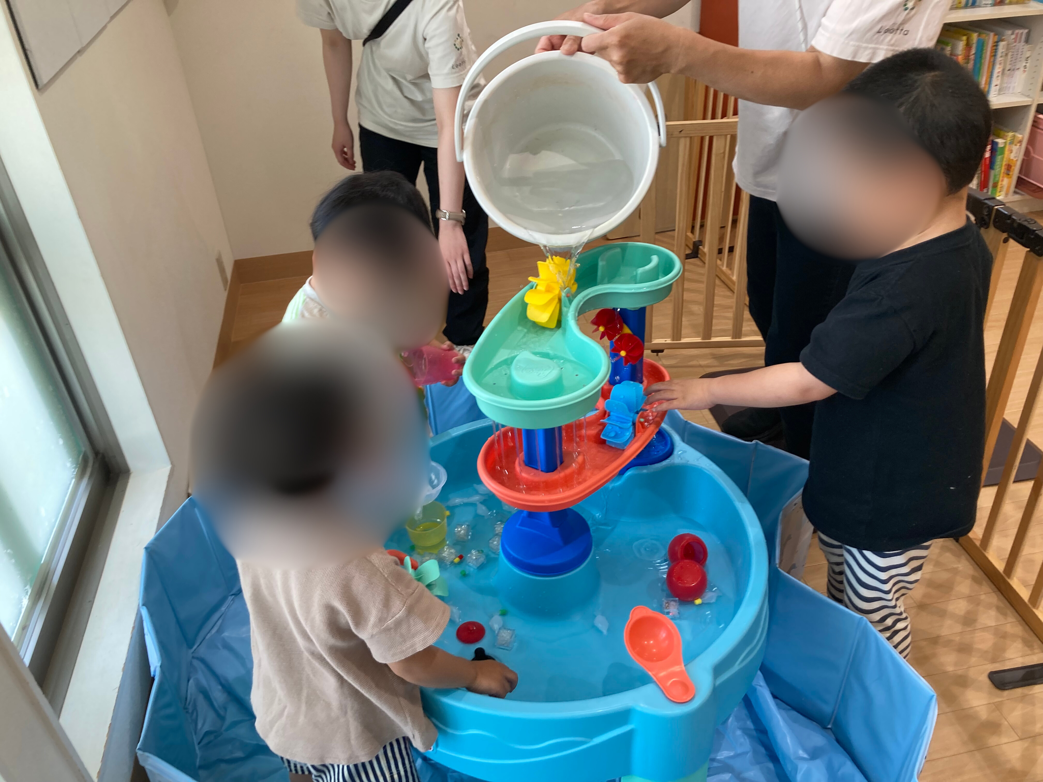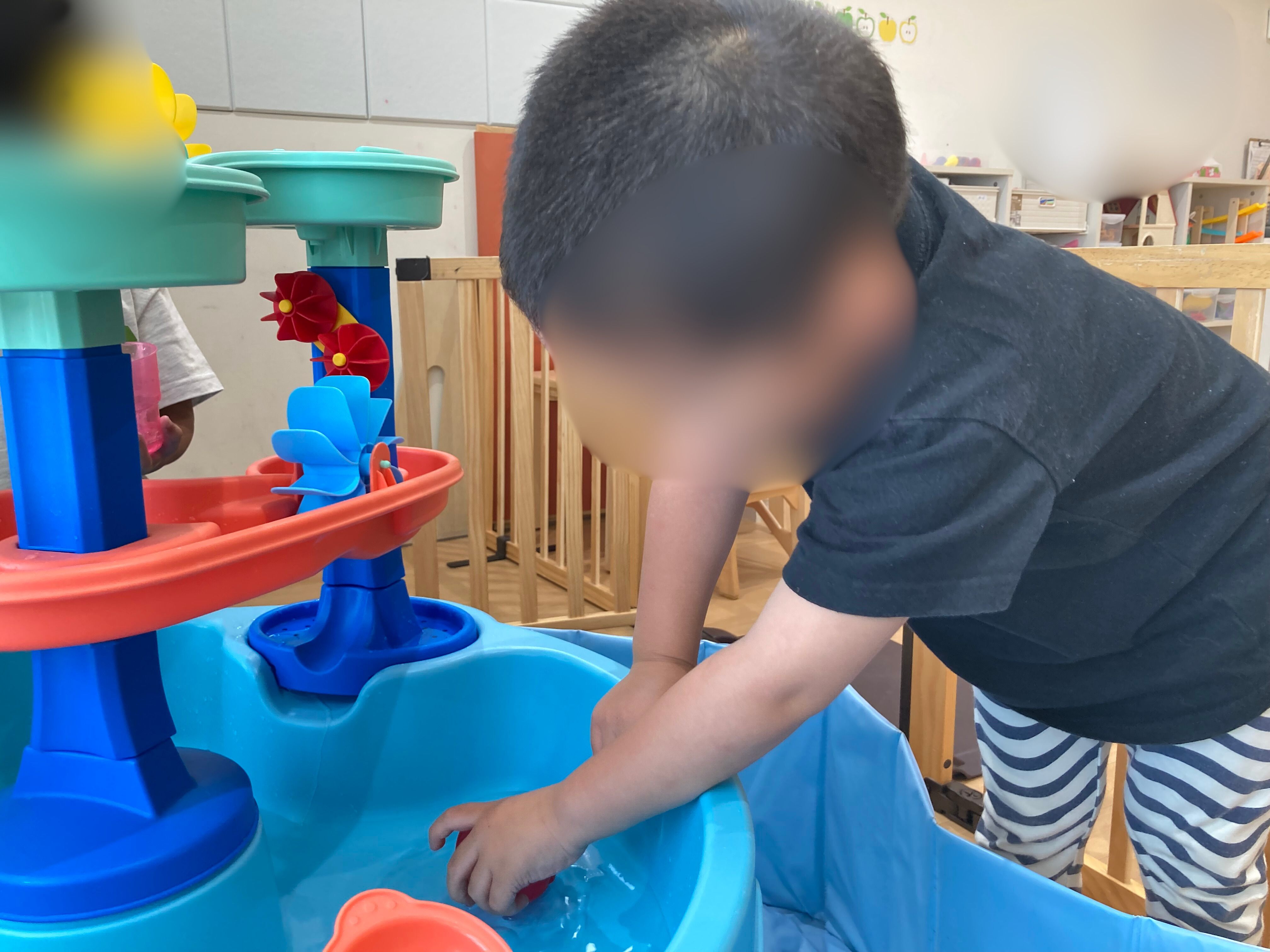 水遊びにためらっていたお友達も、少しずつ慣れて手で触る感触を楽しんでいます!