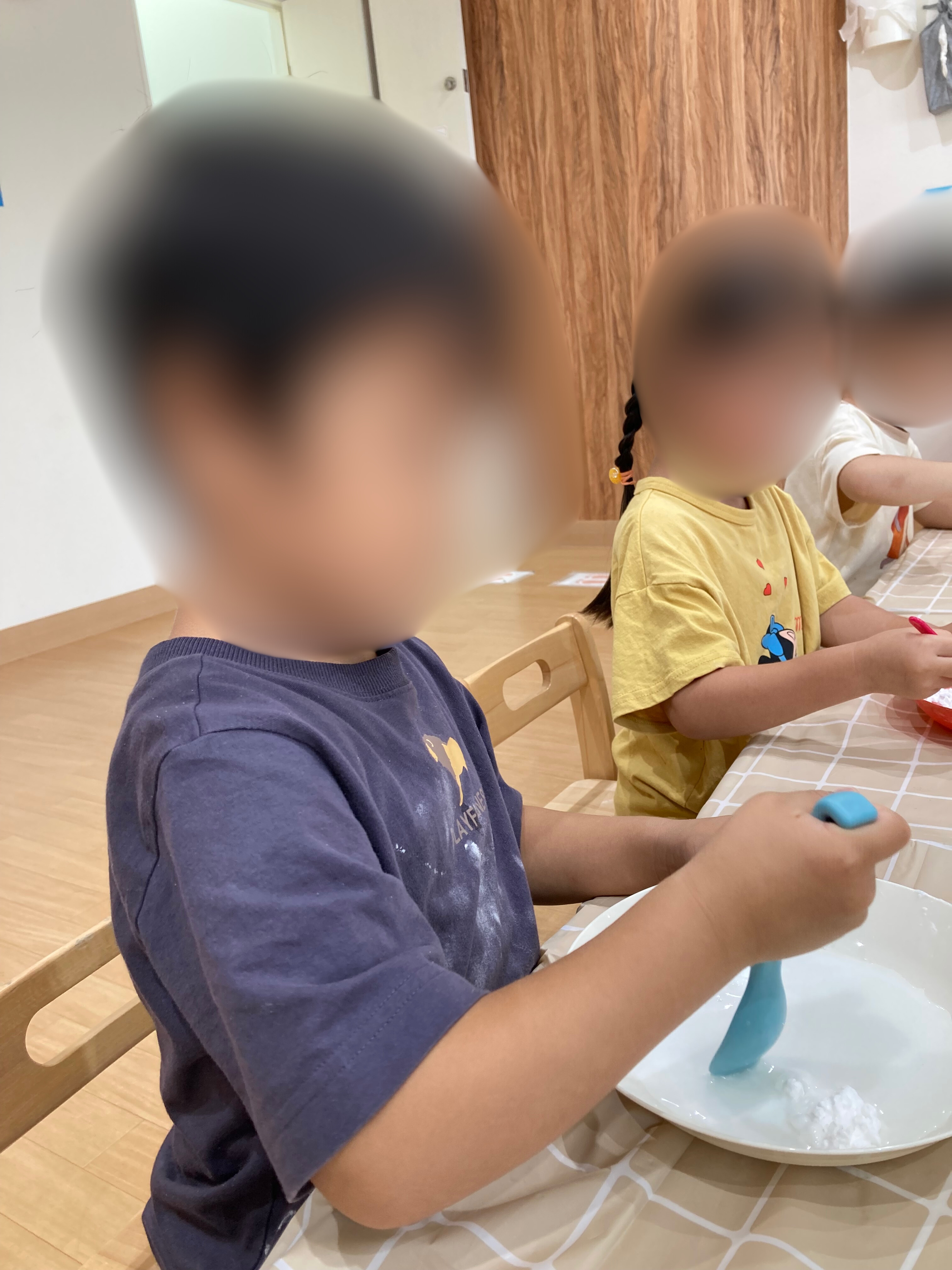 こちらのお友達は粘土にカップを当て、形が浮かび上がることを楽しんでいましたよ😊