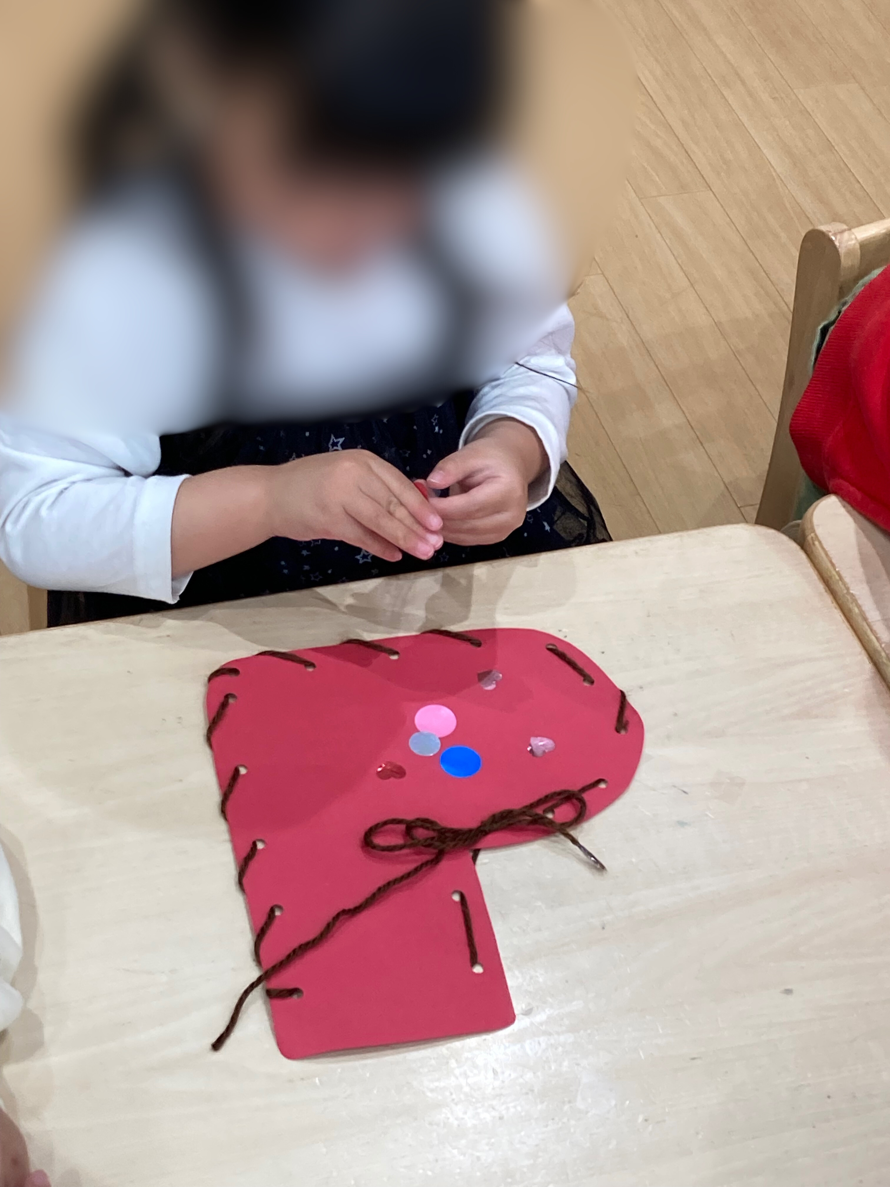少し難しいところは保育者と一緒に作りました😊