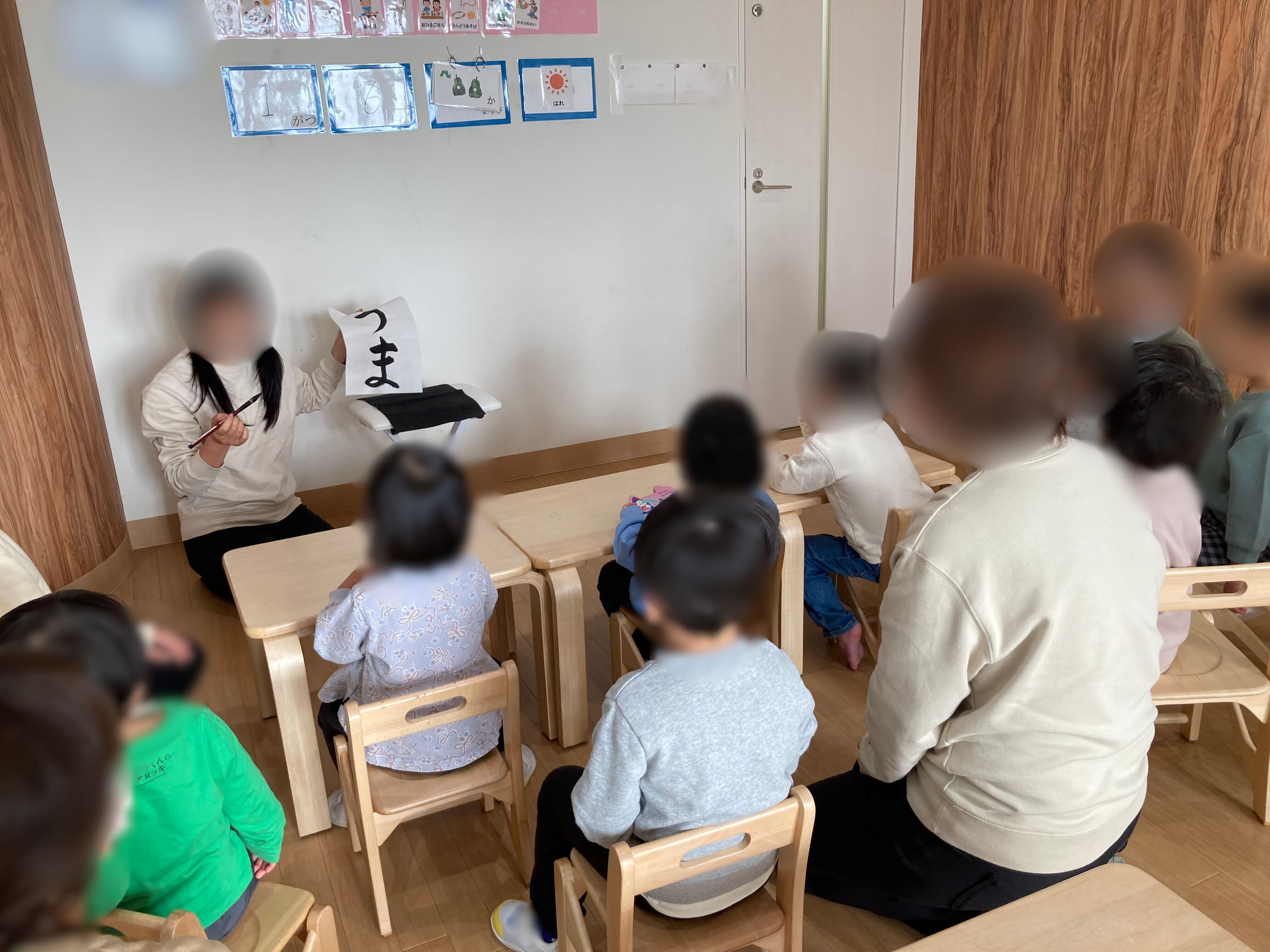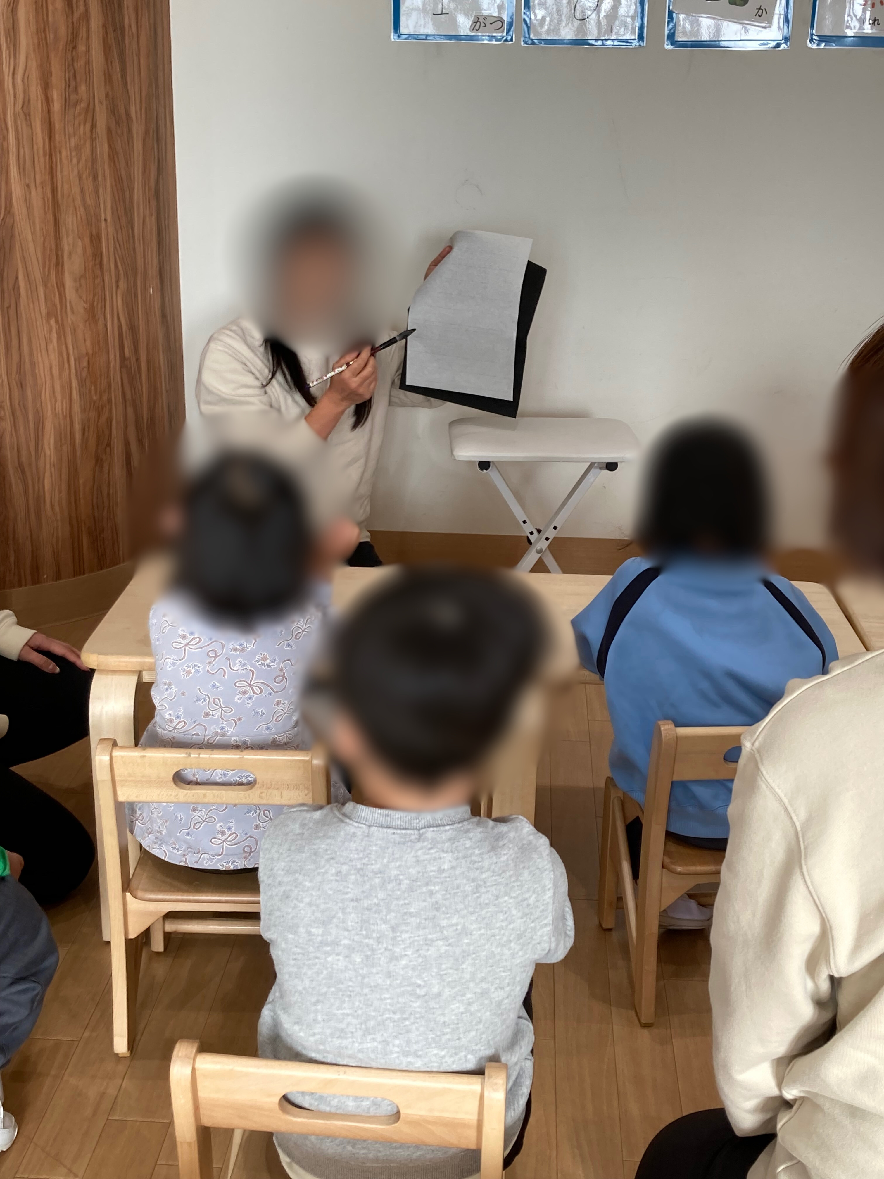 みんな「どうやって書くんだろう」とワクワクしながらお話を聞いていました。