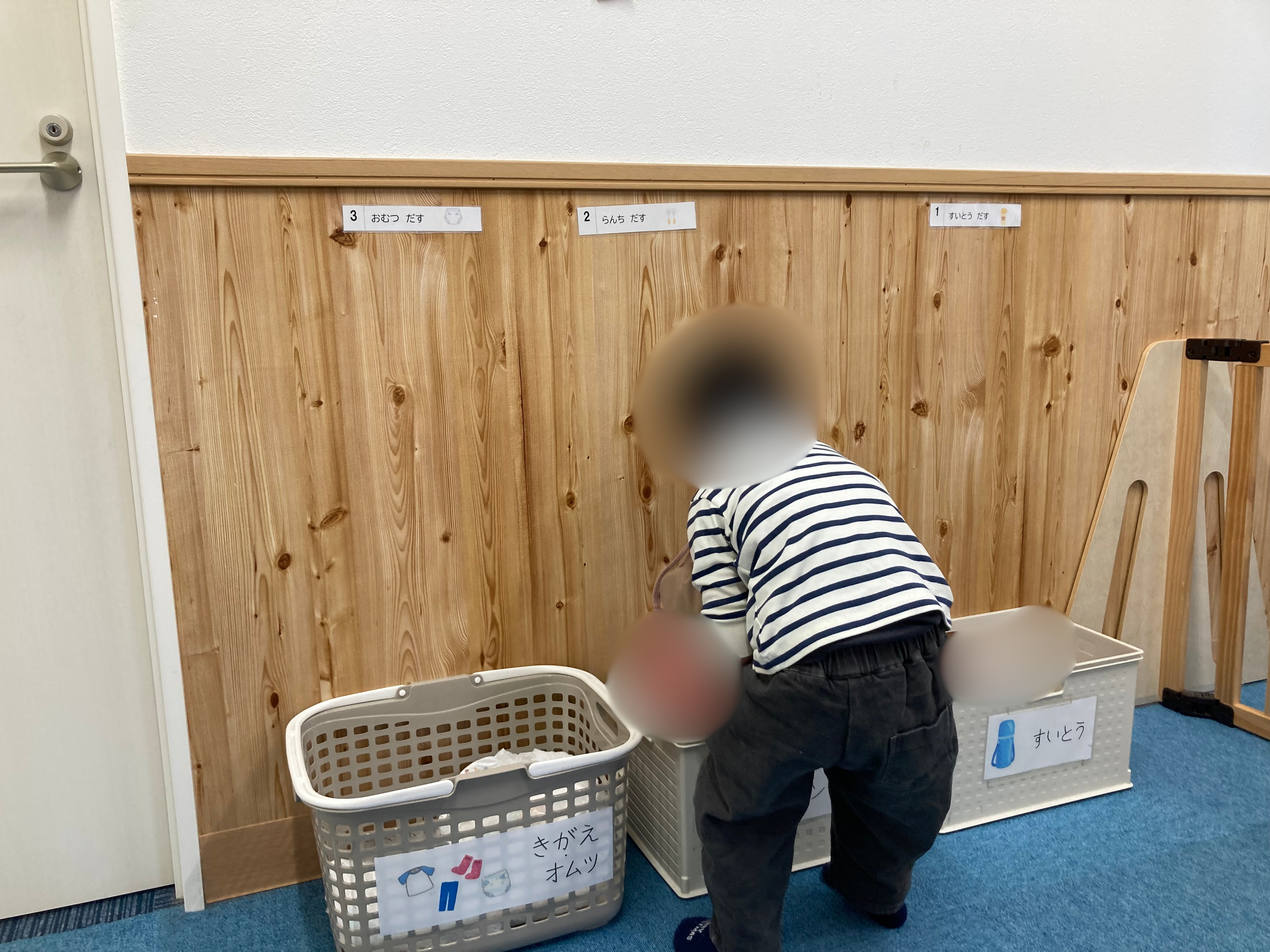 まず保育者と挨拶を済ませたら靴を脱いだり、靴箱にしまいます。